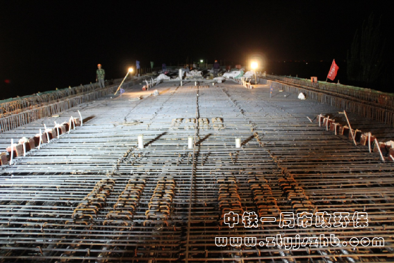 跨親和路連續(xù)梁中跨鋼筋綁扎完成